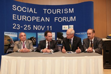 24th of November 2011 - Chev Tony Coleiro Managing Director of Untours Travel Ltd., addressing a press conference during the European Social Tourism Conference, held in Malta at the San Gorg Corinthia Hotel, St. Julians. Also attending the Press conference - Mr. Jean – Mark Mignon President of the International Social Tourism Organisation, Hon. Dr. Mario Demarco, Parliamentary Secretary for Tourism, Culture and Environment and Mr. Victor Carachi, President of the General Workers Union Malta.