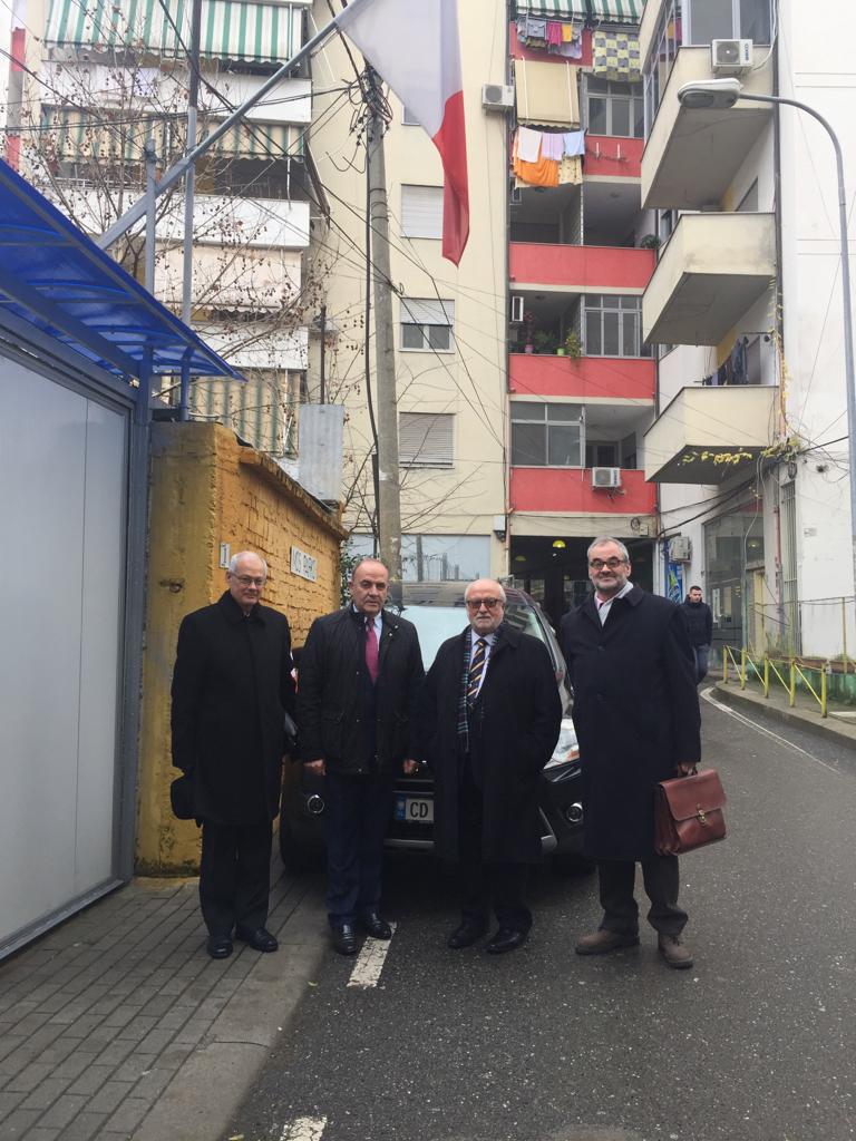 February 2018 - Tirana, Albania : Baron Chev. Anthony C. Coleiro had bilateral meeting with Dr. Tom Preku Honorary Consul at the Honorary Consulate of Malta in Albania. Discussions yook place at the Consulate for Malta during which they discussed Tourism in general, including the way forward for the setting up of an Institute of Tourism Studies in Tirana, using the same model of ITS - Malta, the monitoring and implementation of hospitality standards amongst other subjects of interest. Baron Coleiro was accompanied by Profs. Alfred Josef Baldacchino - Rector Magnificus of Universitas Sancti Cyrilli - Malta and Dr. Francesco Favia - Delegate for Albania respectively.