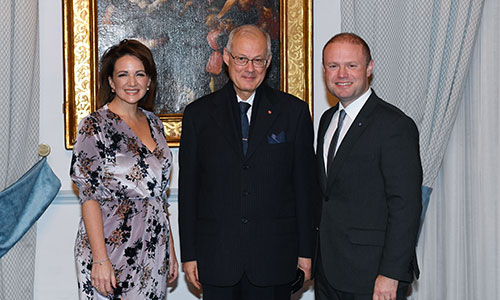 DEC 2017: Baron Chev. Anthony C. Coleiro KGC (OBSS) greeting Hon. Prime Minister Dr. Joseph Muscat MP and Mrs Michelle Muscat at Auberge de Castille Valletta, as a sign of respect, support for His excellent task as Prime Minister of the Republic of Malta, along side with His formidable team, in achieving the best ever economic results for the Maltese Islands and best wishes for another successfull year 2018. Best wishes were extended to Mrs. Muscat and Her Family.