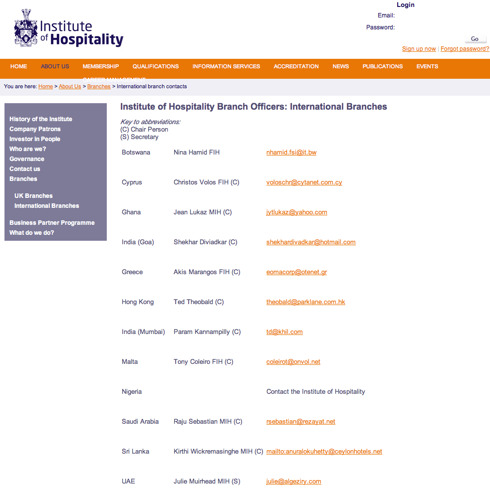 There are currently eight International Ambassadors who play a vital role in promoting the Institute of Hospitality world-wide, representing Africa – South, Asia, Australia and Oceania, Middle East, Caribbean and South America, North America, Southern Europe and Mediterranean and Europe. Ambassadors provide a point of contact for anyone wanting to know more about the Institute and are always pleased to hear from members in their region, play a very important role and direct liaison with National Tourism Organisations, Tourism and Hospitality Groups and other professional bodies and entities. Institute of Hospitality Ambassadors represent the Institute at functions, conferences and events and are helping to increase Institute of Hospitality membership and accreditation of educational programmes in their region, as well as supporting honorary representatives to form new International Group.